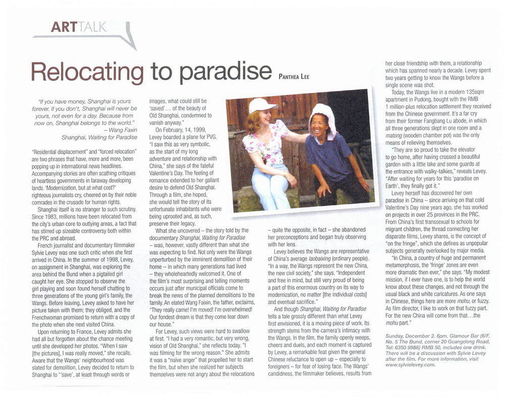 Shanghai Waiting for Paradise has been broadcasted on France Television (France 3) in the program: LA VIE COMME UN ROMAN.